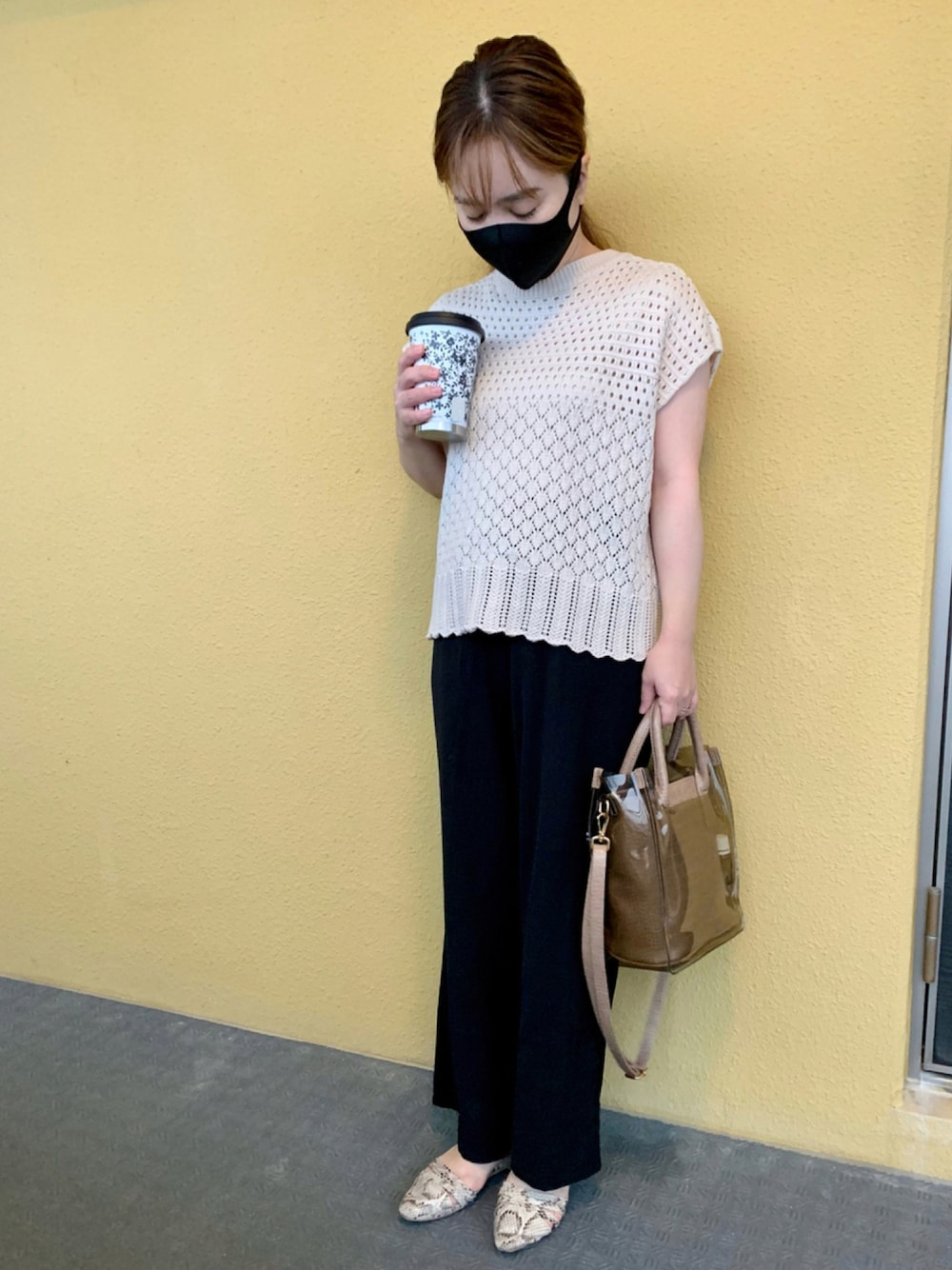とみちゃんのニット/セーター「透かし編みフレンチスリーブニットトップス」を使ったコーディネート