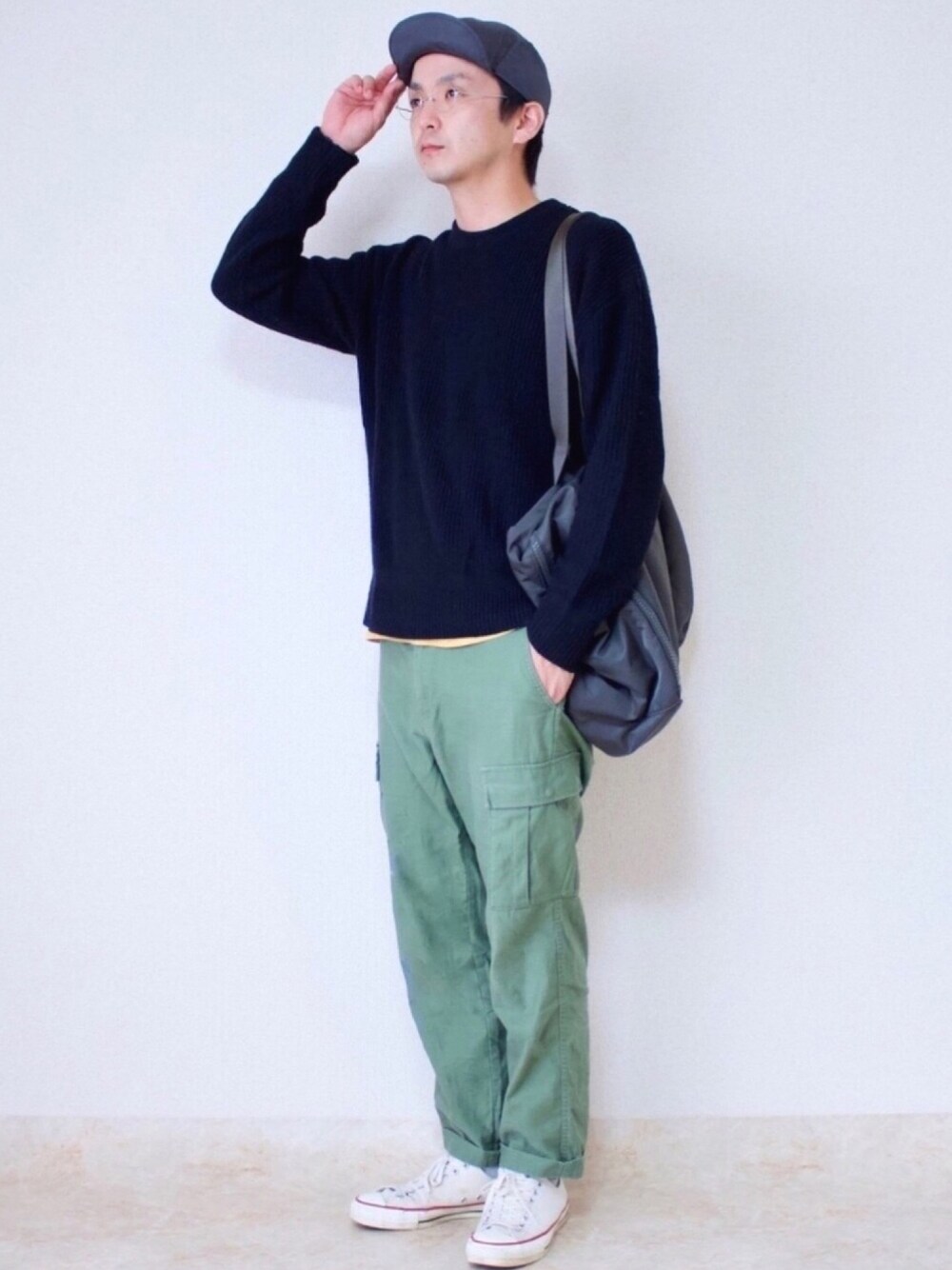 カーゴパンツでゆるっと😄 黒のニットならゆるくはなりすぎないです😄 このフライトキャップ、ツバが反ってて可愛い😄 youtube、インスタもやってます!ぜひプロフィールページのリンクからご覧ください😊✨