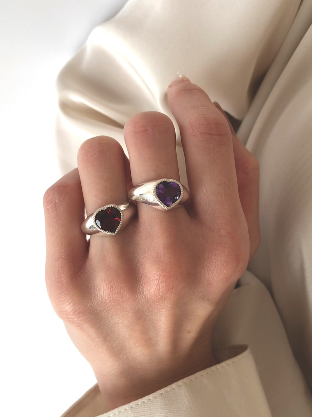 rierieのリング「シルバー925 8㎜天然石ハート シグネットリング【ガーネット・アメシスト】」を使ったコーディネート
