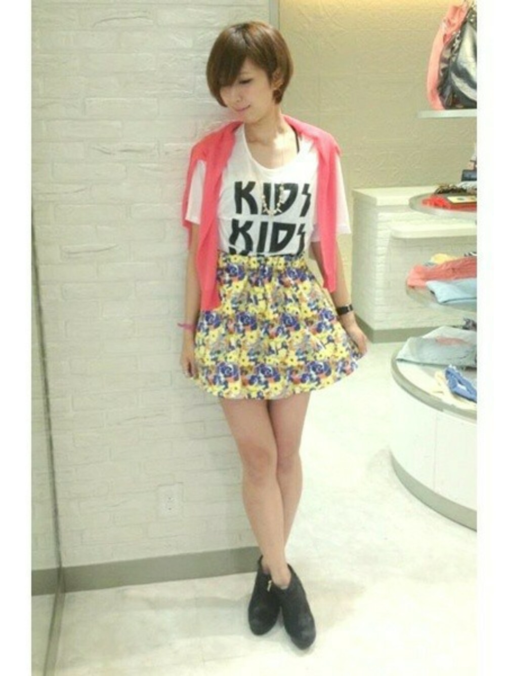 KIDSのプリントで ストリート感をミックスさせた カジュアルレディなスタイリング♡ 大人気のフラワープリントは ちょっと派手なくらいがちょうどいいんです(*≧∀≦*)