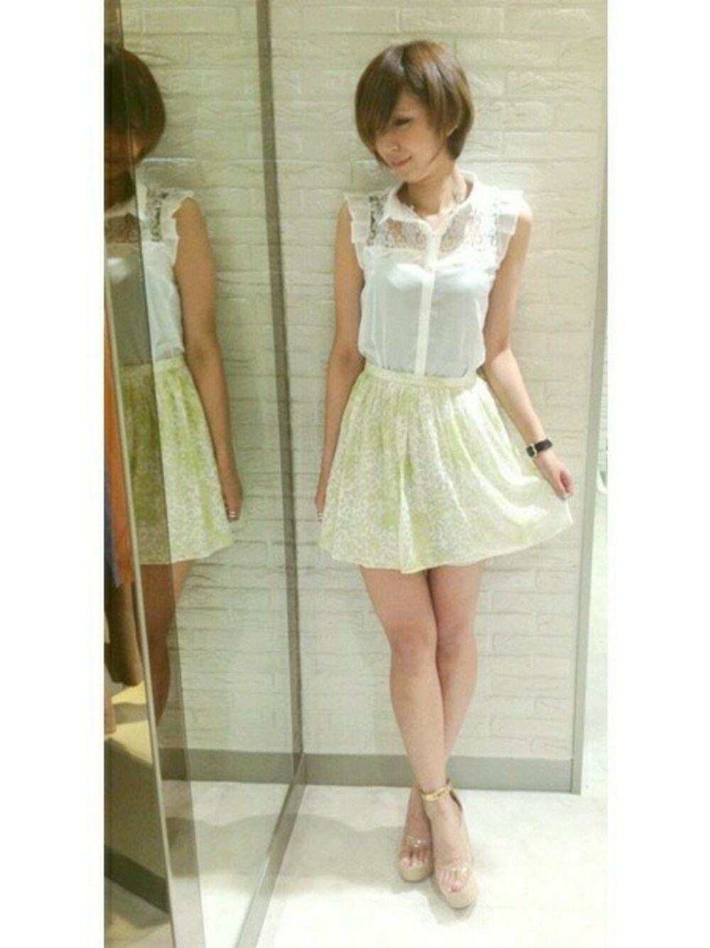 フリルとレースの組み合わせが とことんレディなブラウス♪ フレアが女の子らしいスカートと 合わせて、ちょっぴり甘めな デートスタイルの完成です♡