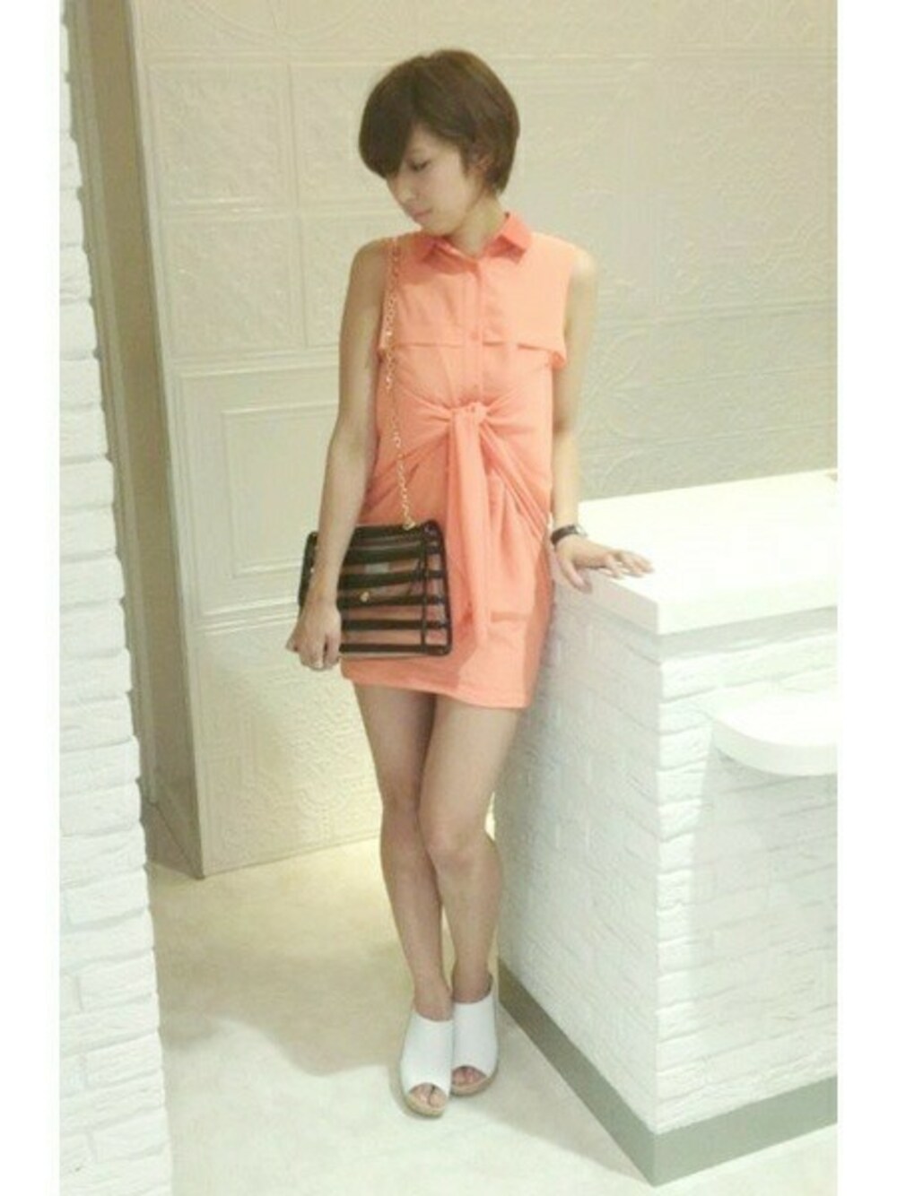 爽やかなオレンジが 夏らしいワンピース★ 前結びのデザインが スタイルアップを叶えてくれる 優秀アイテムですo(*′▽`)〇