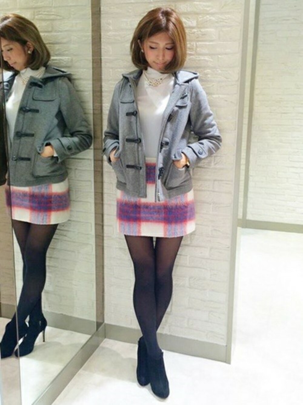 カラフルチェックが印象的なコンパクトスカート^^ 大人気のダッフルコートを羽織ってカジュアルMIXが今年流★