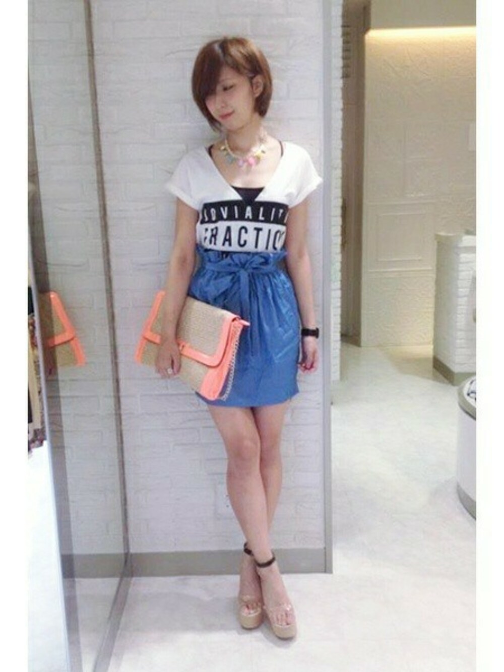 トップスとスカート合わせても1万円以下!! 人気のTシャツは大胆な深めの Vネックがポイント☆ あえてタイトスカートを合わせて 女らしさアップなコーデです♡