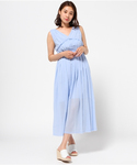 夏らしいカラーのロングワンピース。 裏地が短めで、足元は程よく透け感の出るデザイン。 ウエストがゴムで楽に着られる1枚。