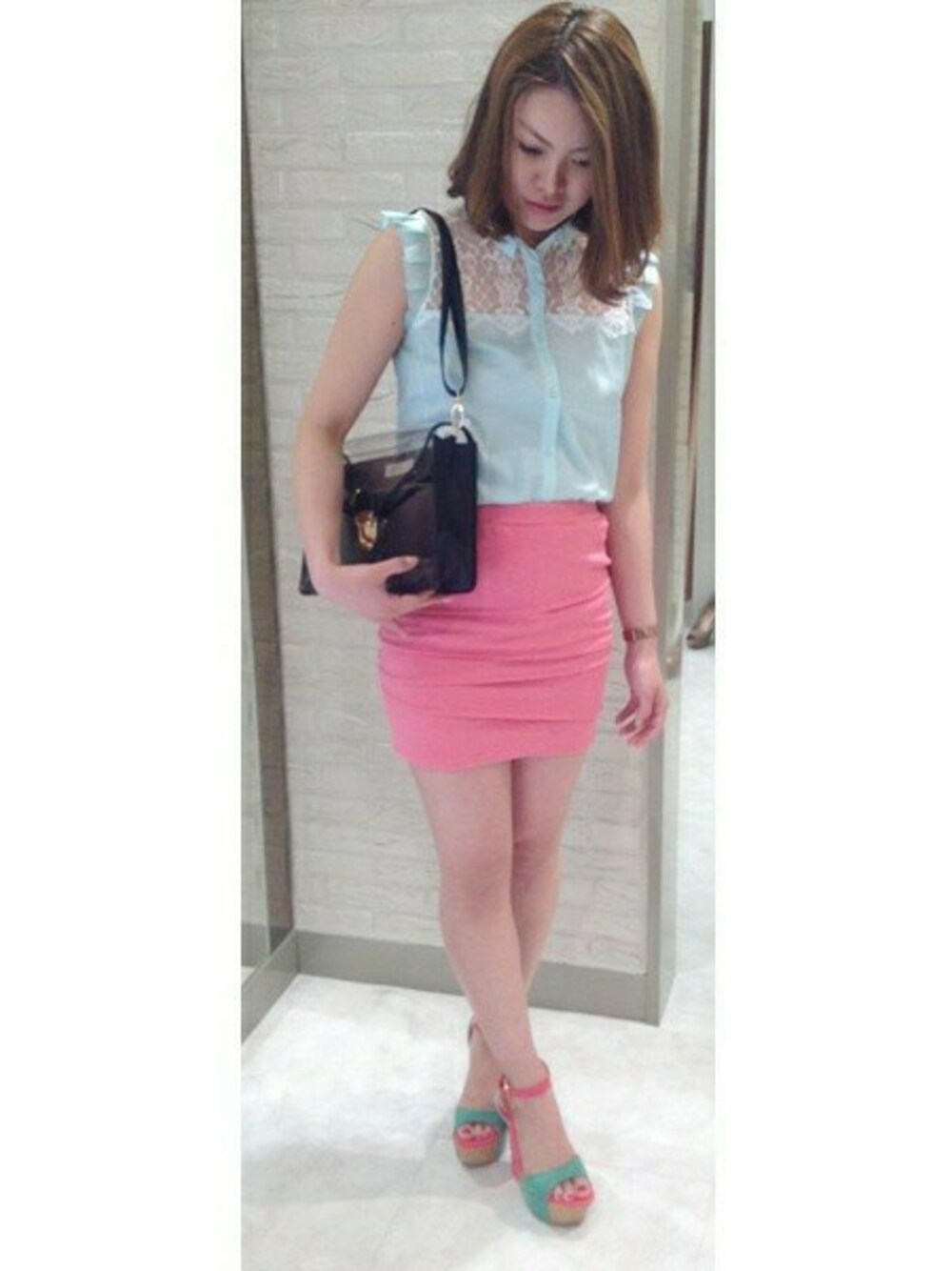レースブラウス×ジャガードスカートの 組み合わせでとことん女の子らしい コーディネートヽ(^◇^*)/ たくさんの色を使って 今年らしさもアップです♪