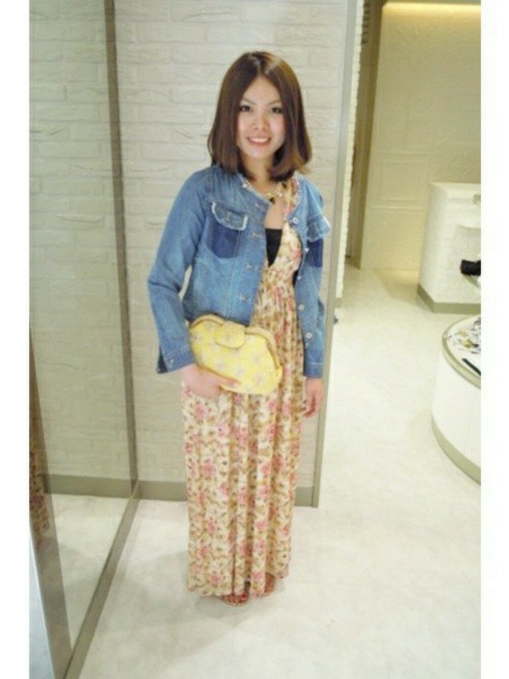 大人気のフラワープリントマキシ!! 柔らかGジャンと合わせて カジュアルMIXが今年っぽい♪ ボカシを入れたようなプリントは レトロな雰囲気もある一枚です(*^^*)