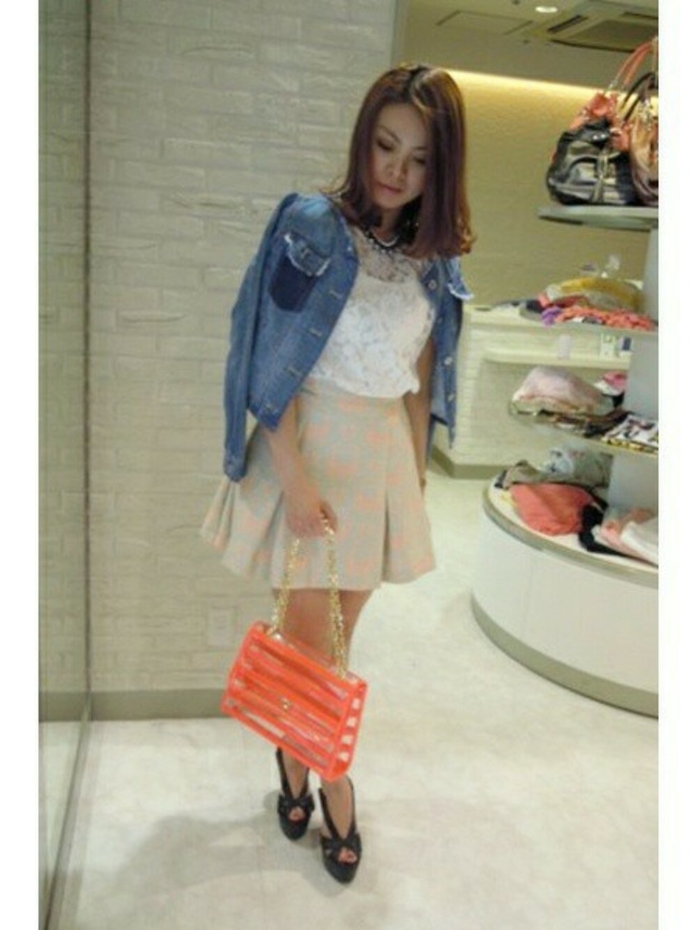 カジュアルレディなコーディネート♪ 柔らかいテンセルデニムの素材は 着心地の良さが特徴☆ バッグは、クリアとネオンカラーで とことん今年らしい着こなしに♪