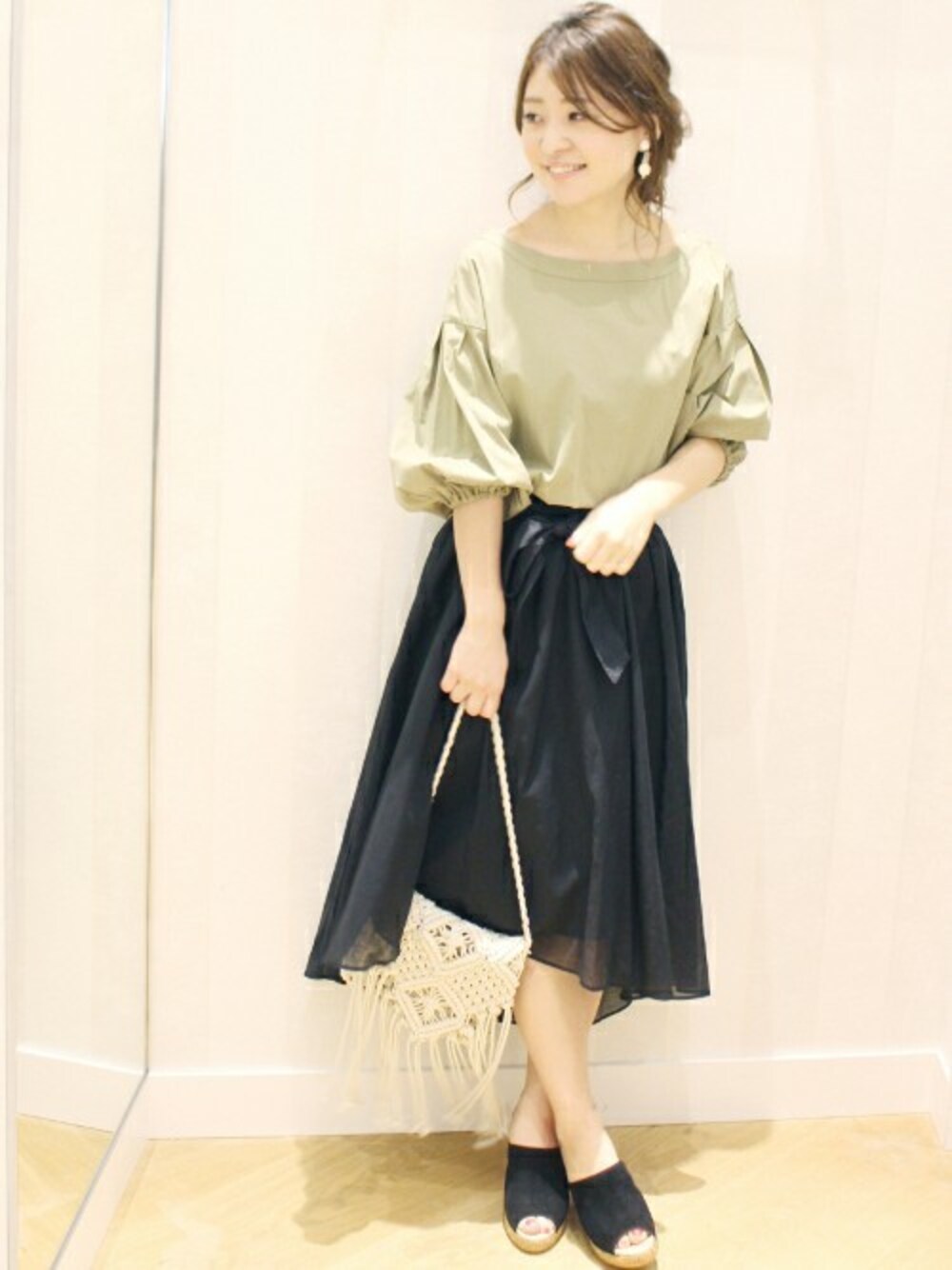 ボリュームスリーブとドロップショルダーで女性らしい印象に。 ストレスフリーな着心地ながらもきちんと感があるので幅広いシーンに対応できます。