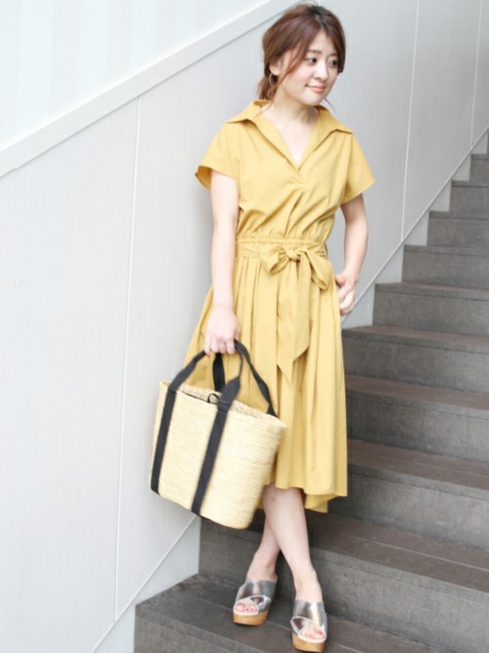 1枚で簡単に旬顔になれるワンピース。 マスタードの色鮮やかなワンピースは、着るだけで気分まで明るくしてくれる。 シンプルに小物を合わせても様になるのでお気に入りの1枚です。