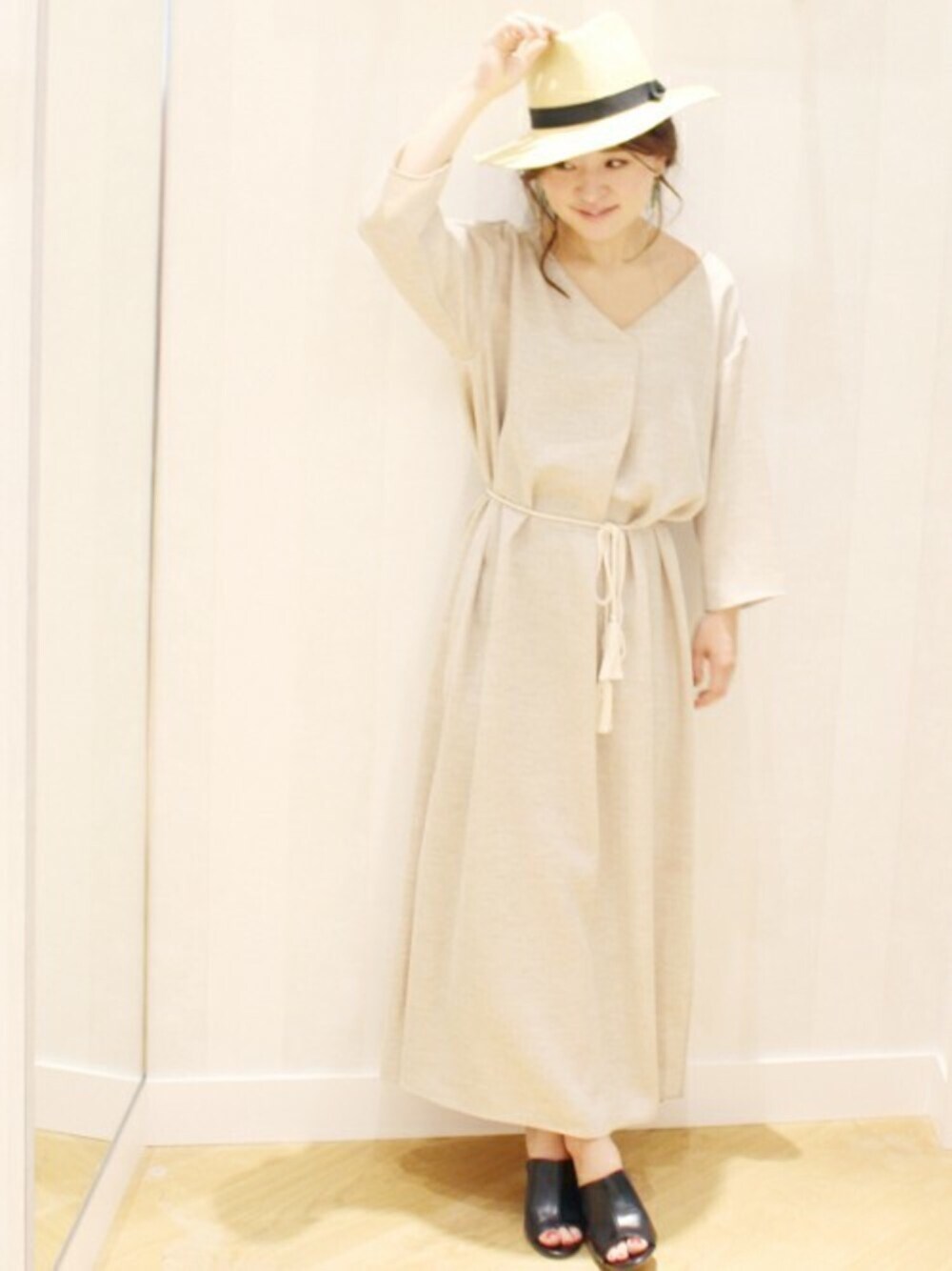MIHOのワンピース「ツイルリネンライク ロングワンピース◆」を使ったコーディネート