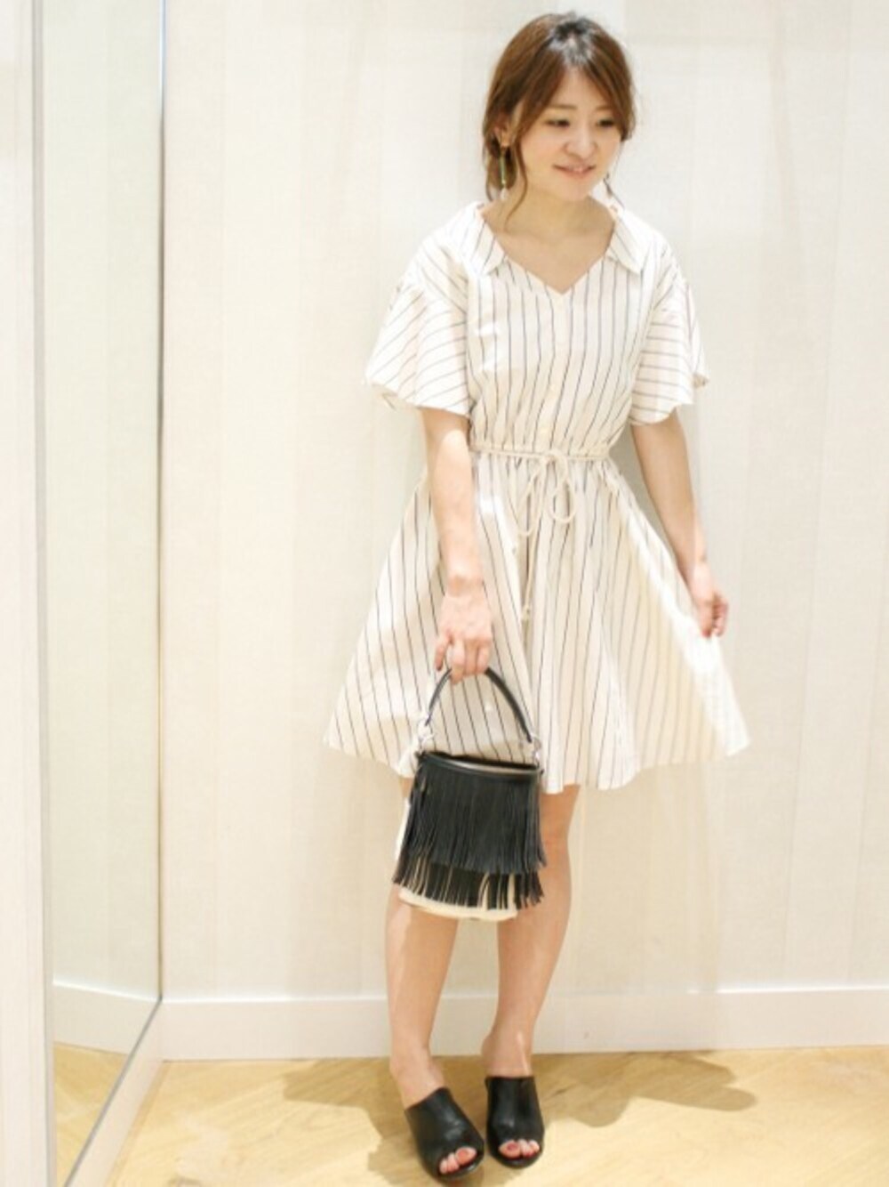 MIHOのワンピース「袖フレア ミニワンピース◆」を使ったコーディネート