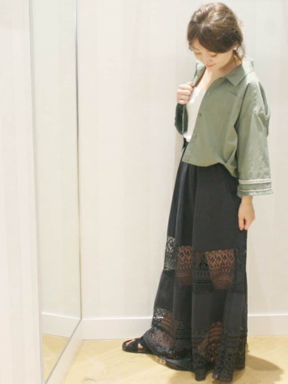 フレアスリーブとショート丈が今年らしいミリタリージャケット。 軽めの素材感で持ち運びもしやすく、さっと羽織れるのも魅力。ロング丈のスカートやワイドパンツとの相性◎。
