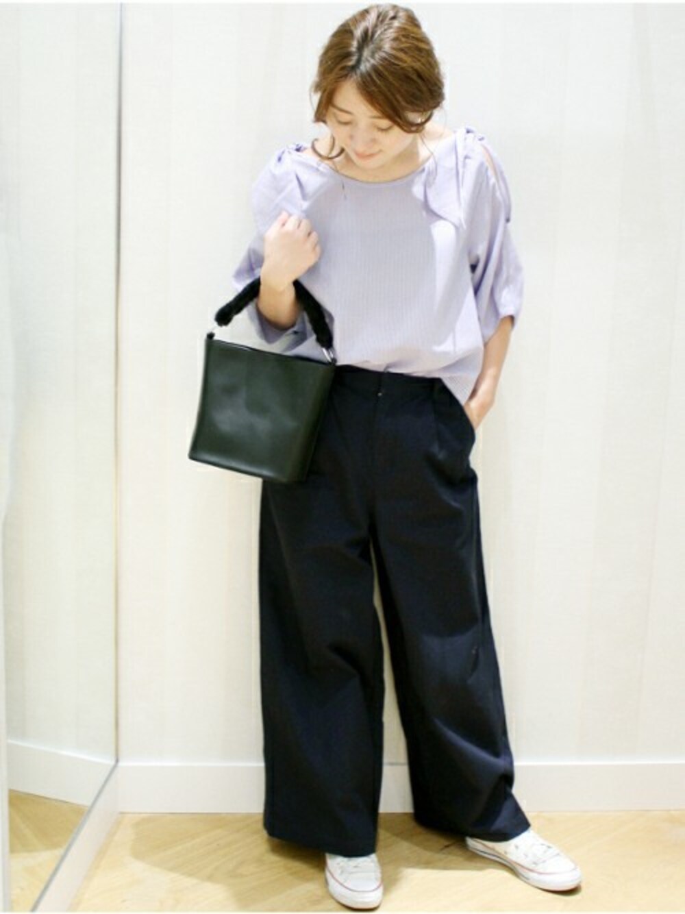 人気の肩リボンブラウスが再入荷しました。前回よりもジャストな丈感でボトムスにインもアウトもしやすくなりました。 ボトムスも選ばず、カジュアルからキレイめまで幅広くスタイリングが出来るので今シーズン大活躍しそうです!