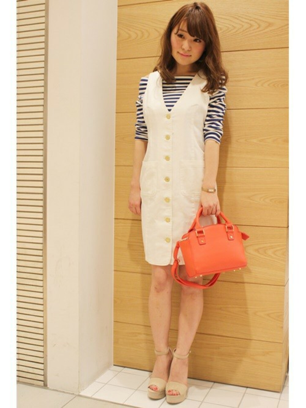 MIHOのワンピース「ホワイトタイトジャンパースカート。」を使ったコーディネート