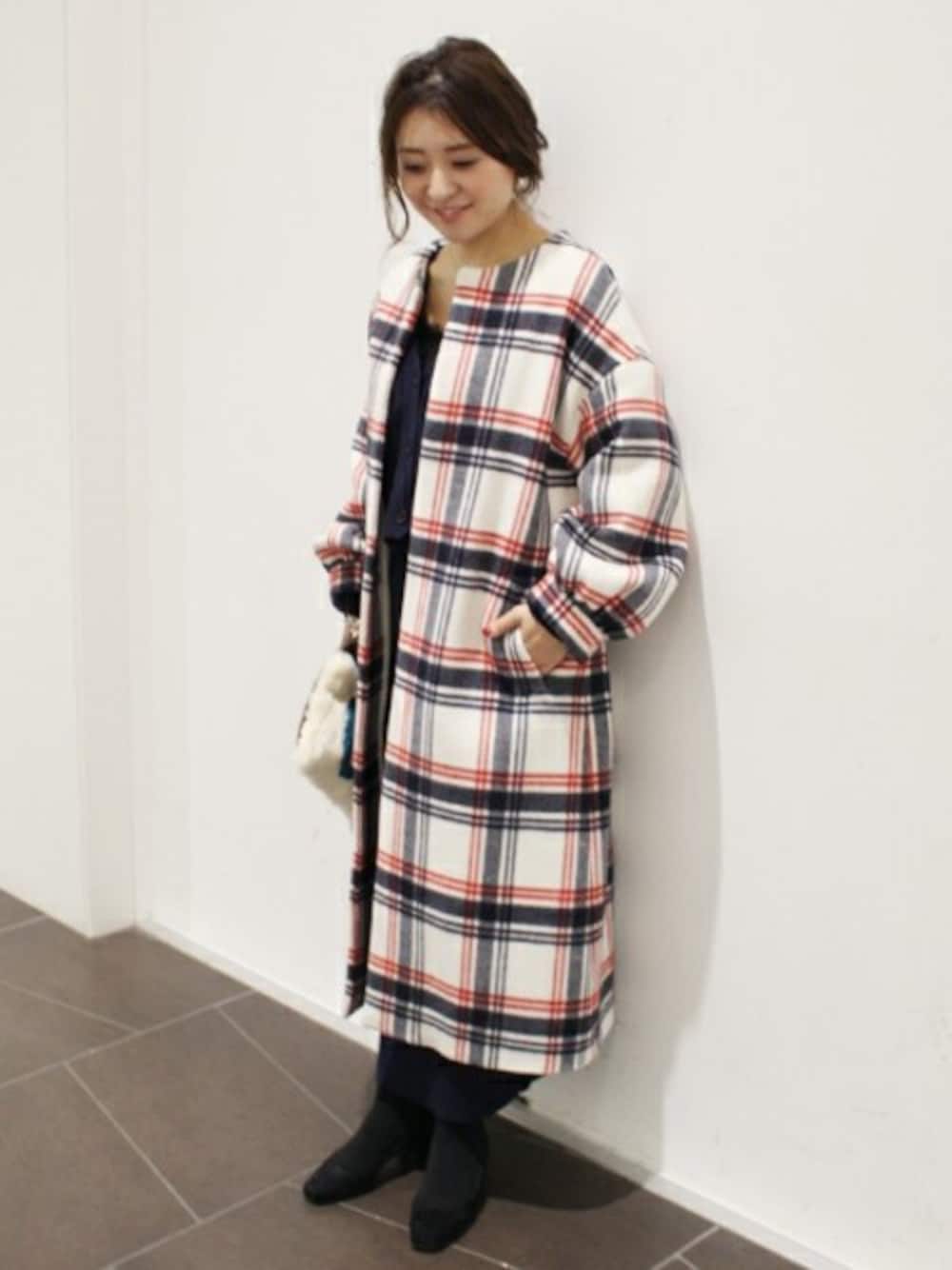 MIHOのその他アウター「ボリュームスリーブノーカラーコート◆」を使ったコーディネート