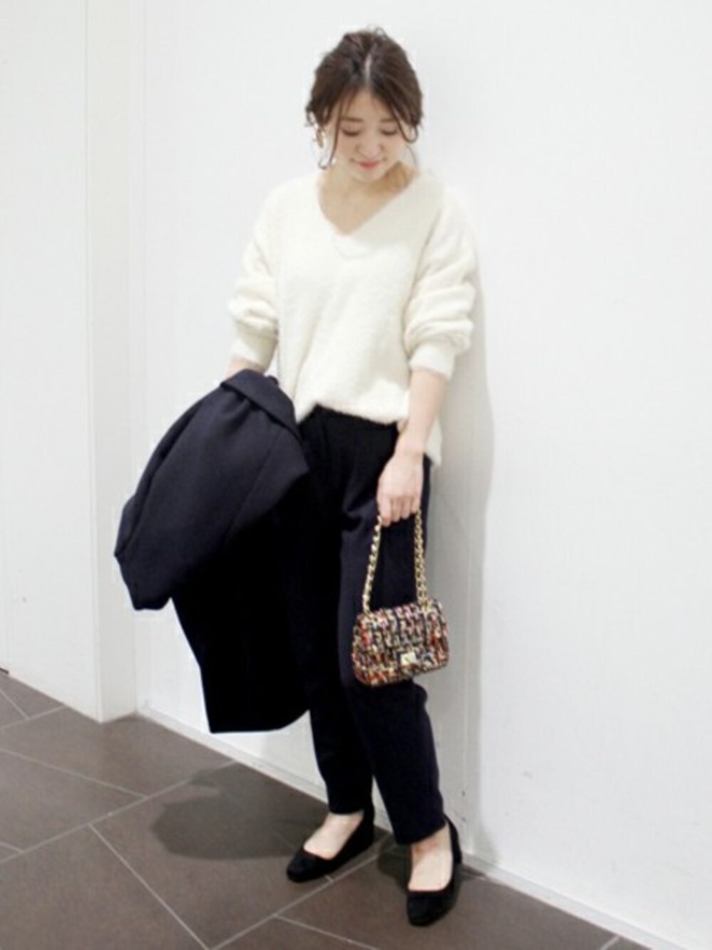 MIHOのニット/セーター「フェザーヤーンVネックプルオーバー◆」を使ったコーディネート