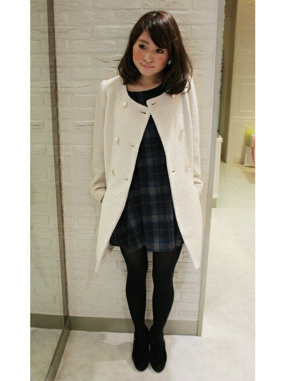 MIHOのその他アウター「ノーカラーダブルコート。」を使ったコーディネート