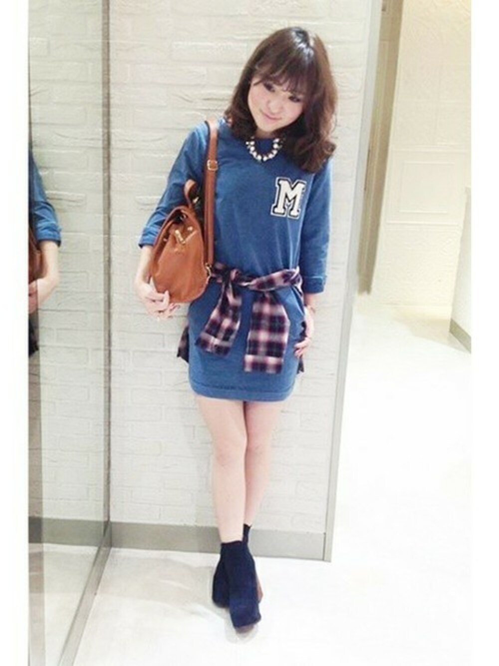MIHOのワンピース「デニムウラケMワッペンワンピース」を使ったコーディネート