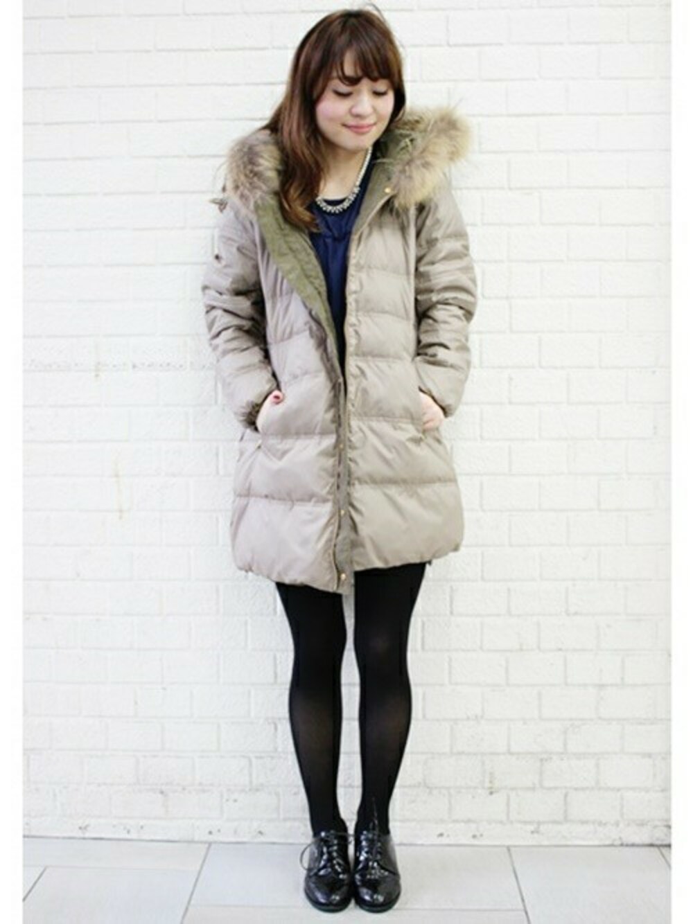 MIHOのモッズコート「リバーシブルモッズダウン。」を使ったコーディネート