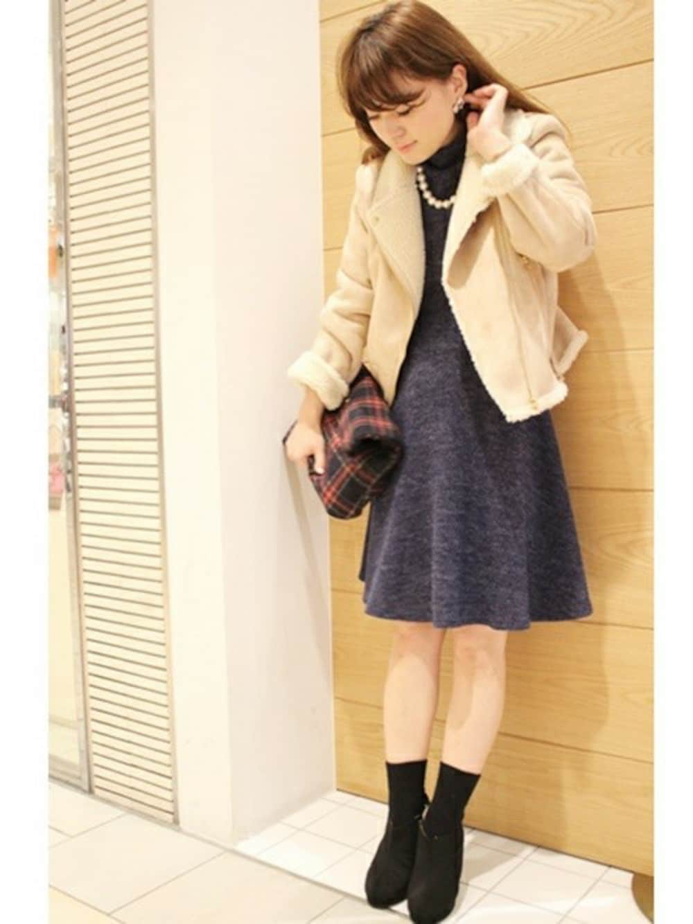 日に日に寒くなる季節にぴったりの 体を冷やさずオシャレが楽しめるジャージーワンピース♪ 楽ちんなのに女の子らしいフィット&フレアのシルエットで その名の通りレディにお召いただけますよ♪ 今回は大人気のムートンコートを羽織って★