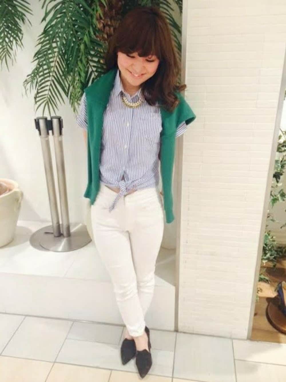 予約会でも大人気だった前結びブラウス! 爽やかなホワイトのハイウエストスキニーとの 相性は抜群です♪♪ フレアスカートやタイトスカートとも 合わせたい一枚です☆