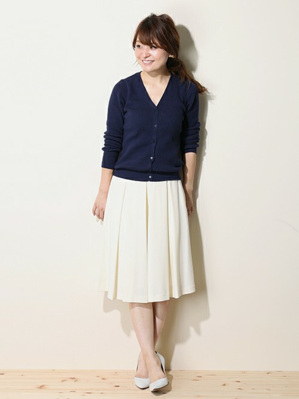 MIHOのカーディガン/ボレロ「リブニットVネック カーディガン【手洗い可能】◆」を使ったコーディネート