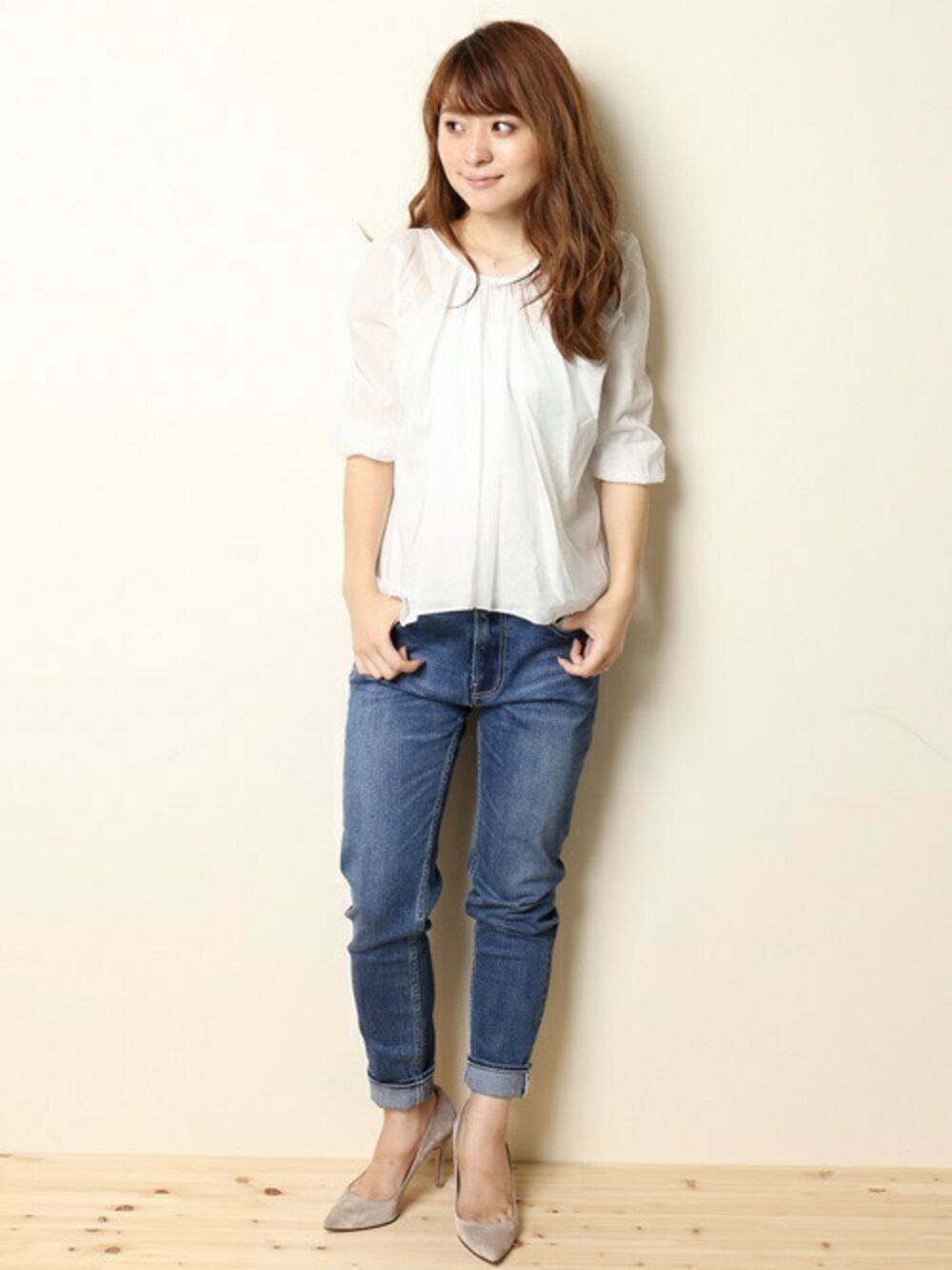 MIHOのシャツ/ブラウス「バックオープンギャザープルオーバー【手洗い可能】◆」を使ったコーディネート