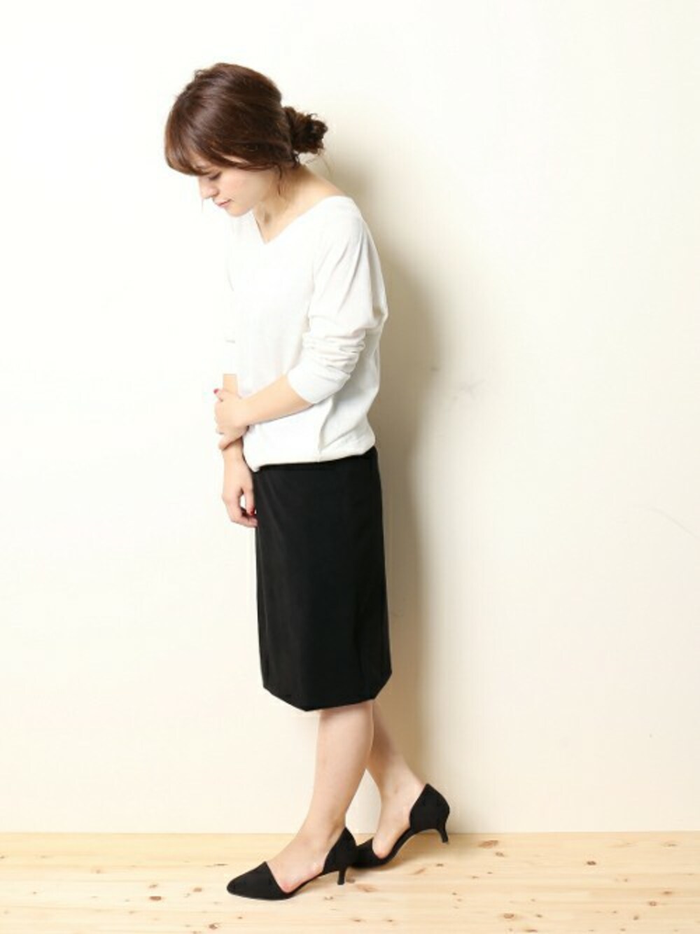 シンプルで女性らしいスタイリング。小物でトレンド感をプラス!