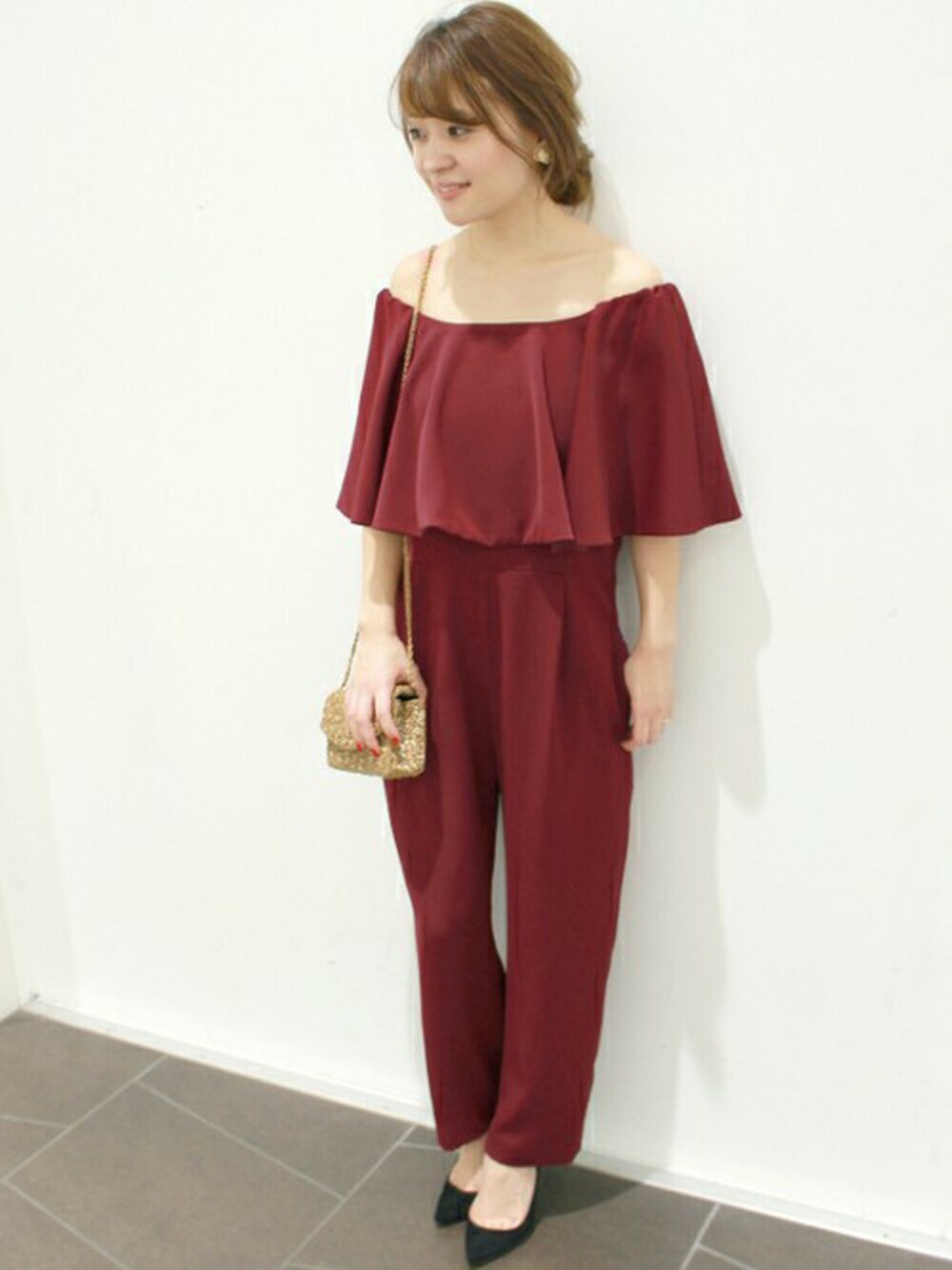 MIHOのつなぎ/オールインワン「オフショルダーケープオールインワンドレス◆」を使ったコーディネート
