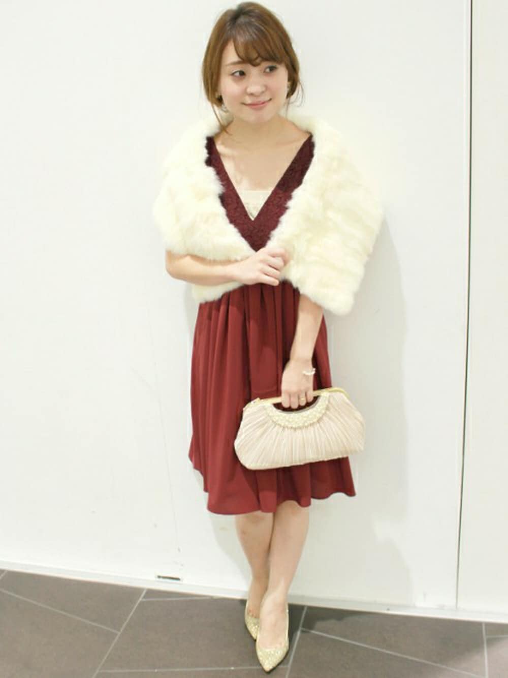 これからのシーズンに大活躍間違えなしのワンピースにファーのストールを合わせてシーズン感をプラス。