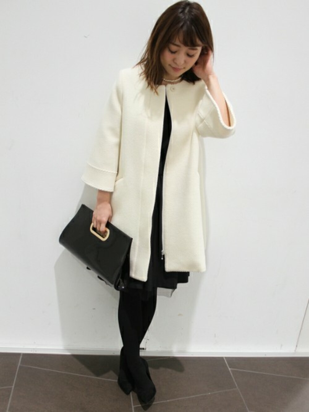 MIHOのその他アウター「ノーカラーAラインコート◆」を使ったコーディネート