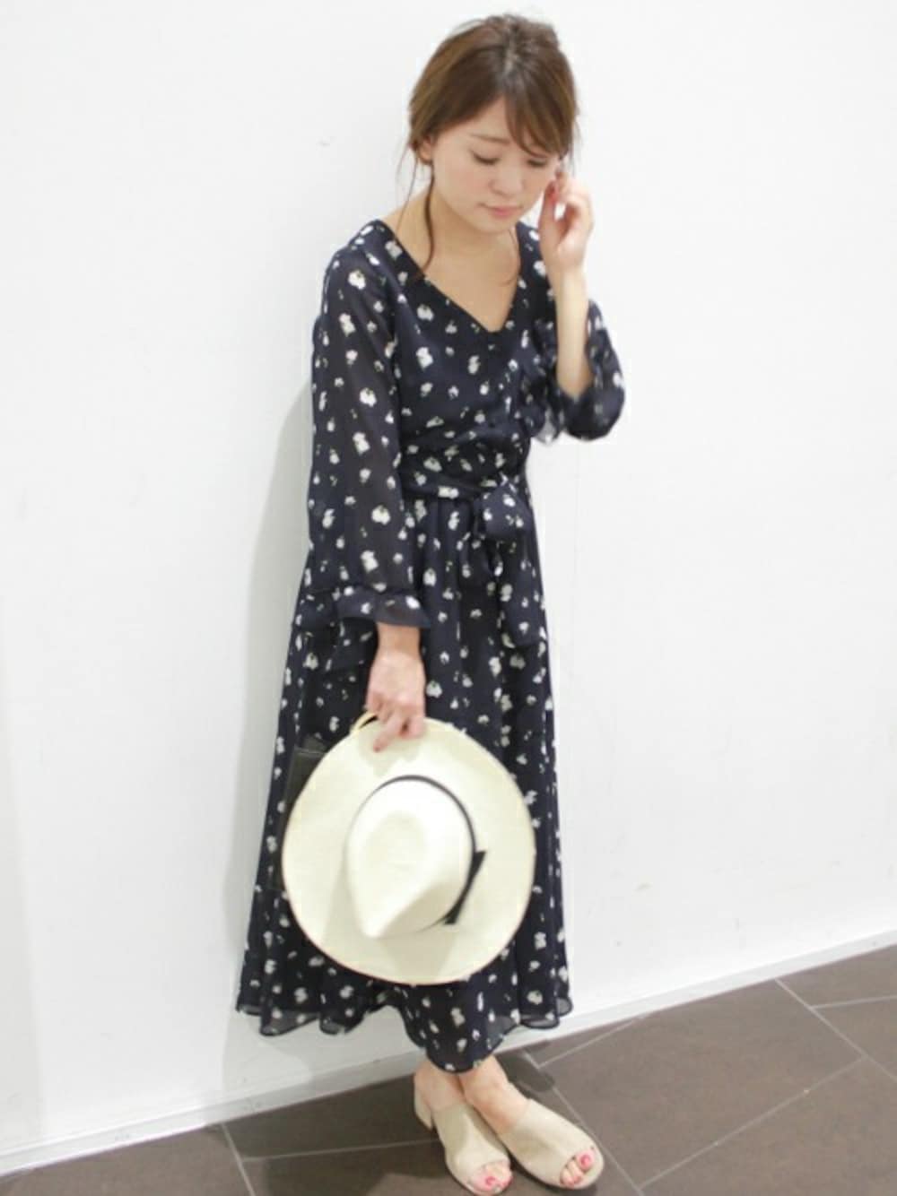 MIHOのワンピース「ウエストマークフラワーロングワンピース◆」を使ったコーディネート