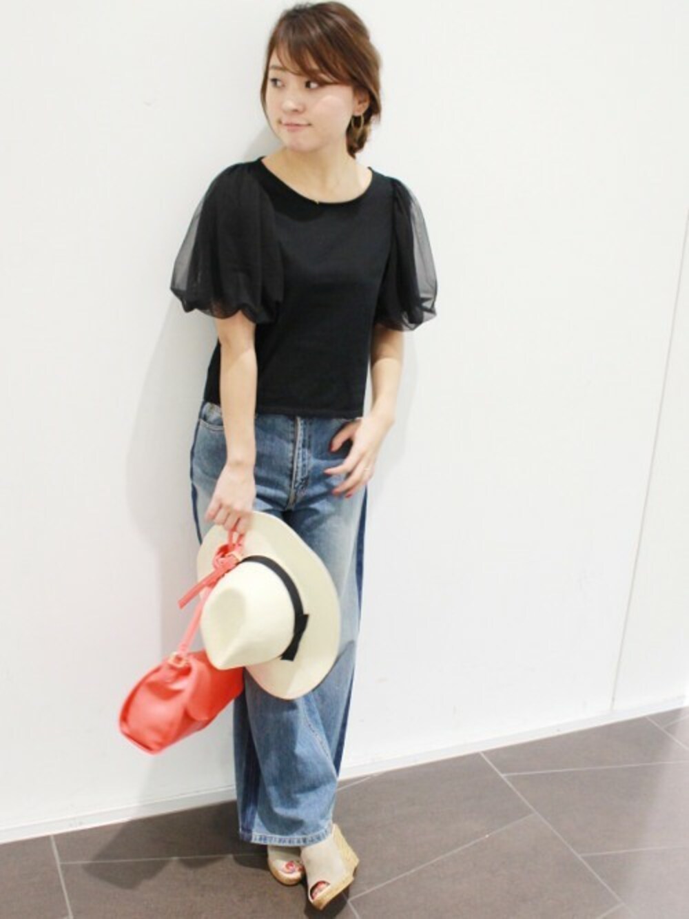 MIHOのTシャツ/カットソー「チュール袖デザインTシャツ◆」を使ったコーディネート
