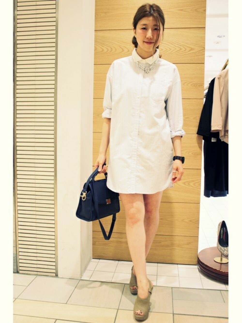 LIMITLESS LUXURY Shinjukuのシャツ/ブラウス「【WEB限定価格商品】ストライプシャインクレリックシャツワンピース。」を使ったコーディネート