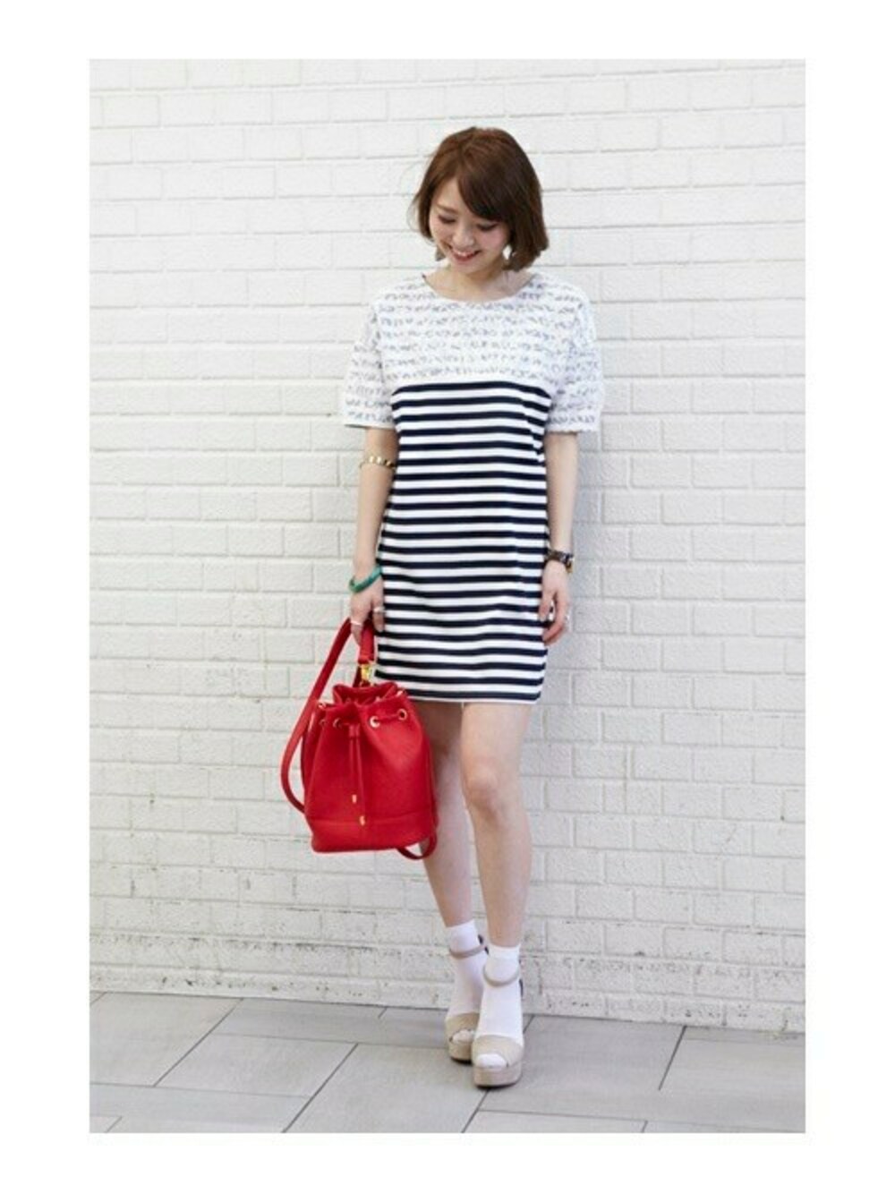 トレンドのボーダーワンピースに、 さりげなくレパード柄を施したシースルーをドッキング。 カジュアルさの中に品のある一枚に仕上がりました。