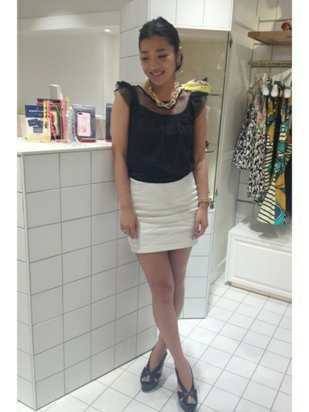 大人モノトーンコーデ☆ フラワープリントや派手柄を 取り入れたスタイルが多いけど やっぱりモノトーンは外せない!! 透け感のあるチュールトップスに タイトシルエットのスカートを 合わせたスタイルが、 とことん女らしくてgood♪