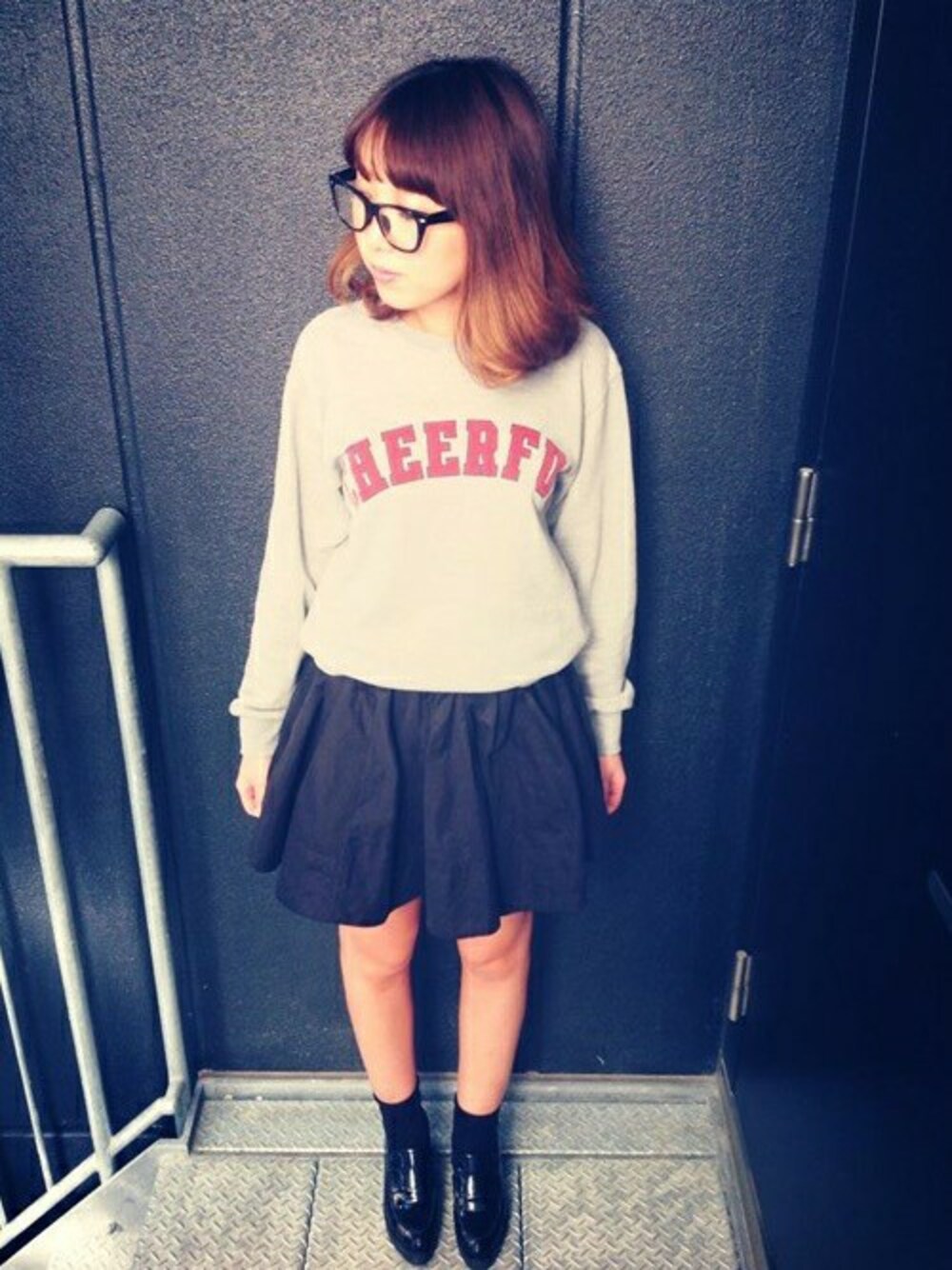 トレンドのロゴスウェットがポイント。 カジュアルトップスには女の子らしい お店でも大人気のフレアスカートを合わせて 大人なカジュアルレディを演出して。