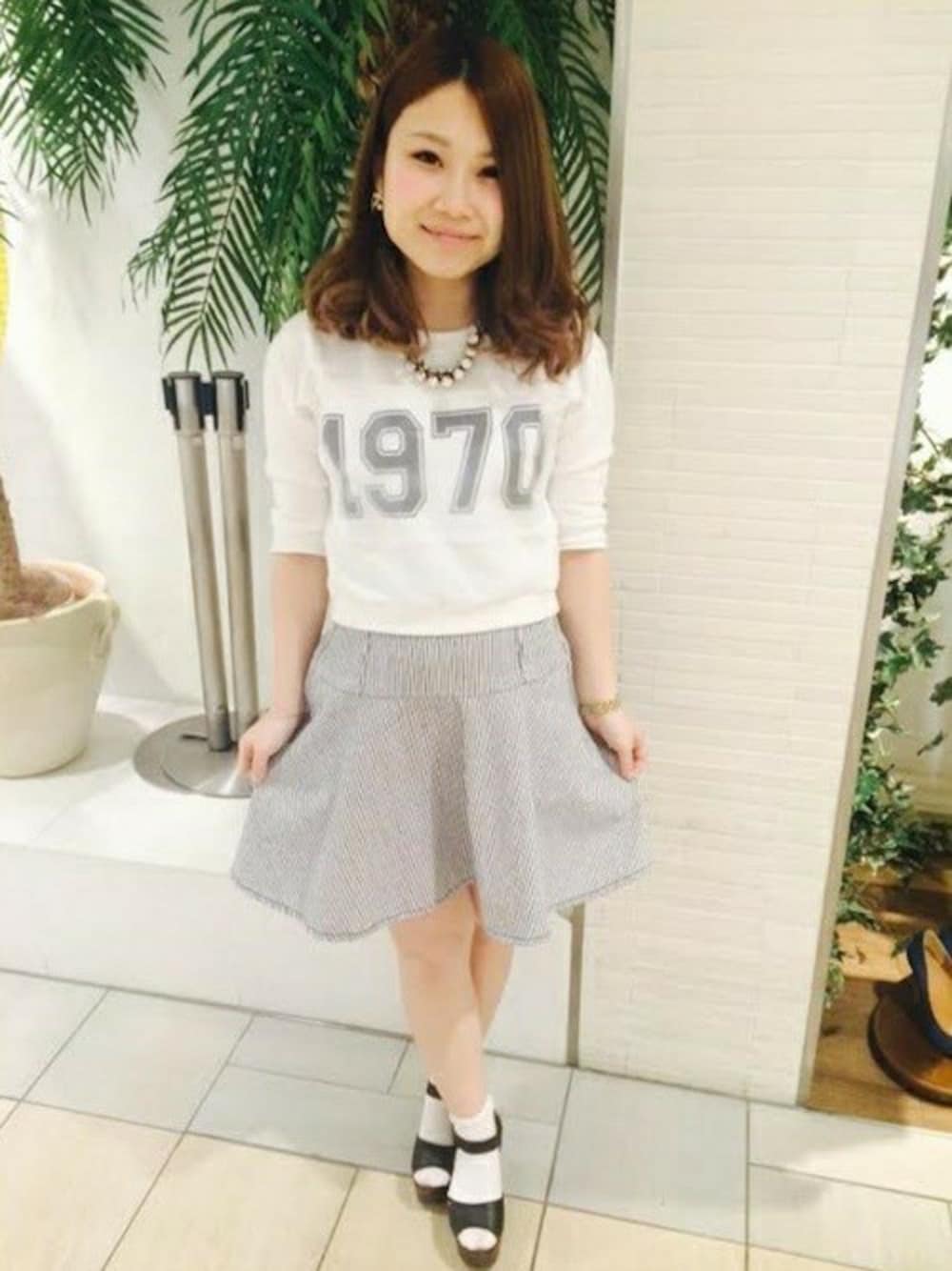 LIMITLESS LUXURY Shinjukuのスカート「【WEB限定価格商品】ヒッコリーフレアスカート。」を使ったコーディネート