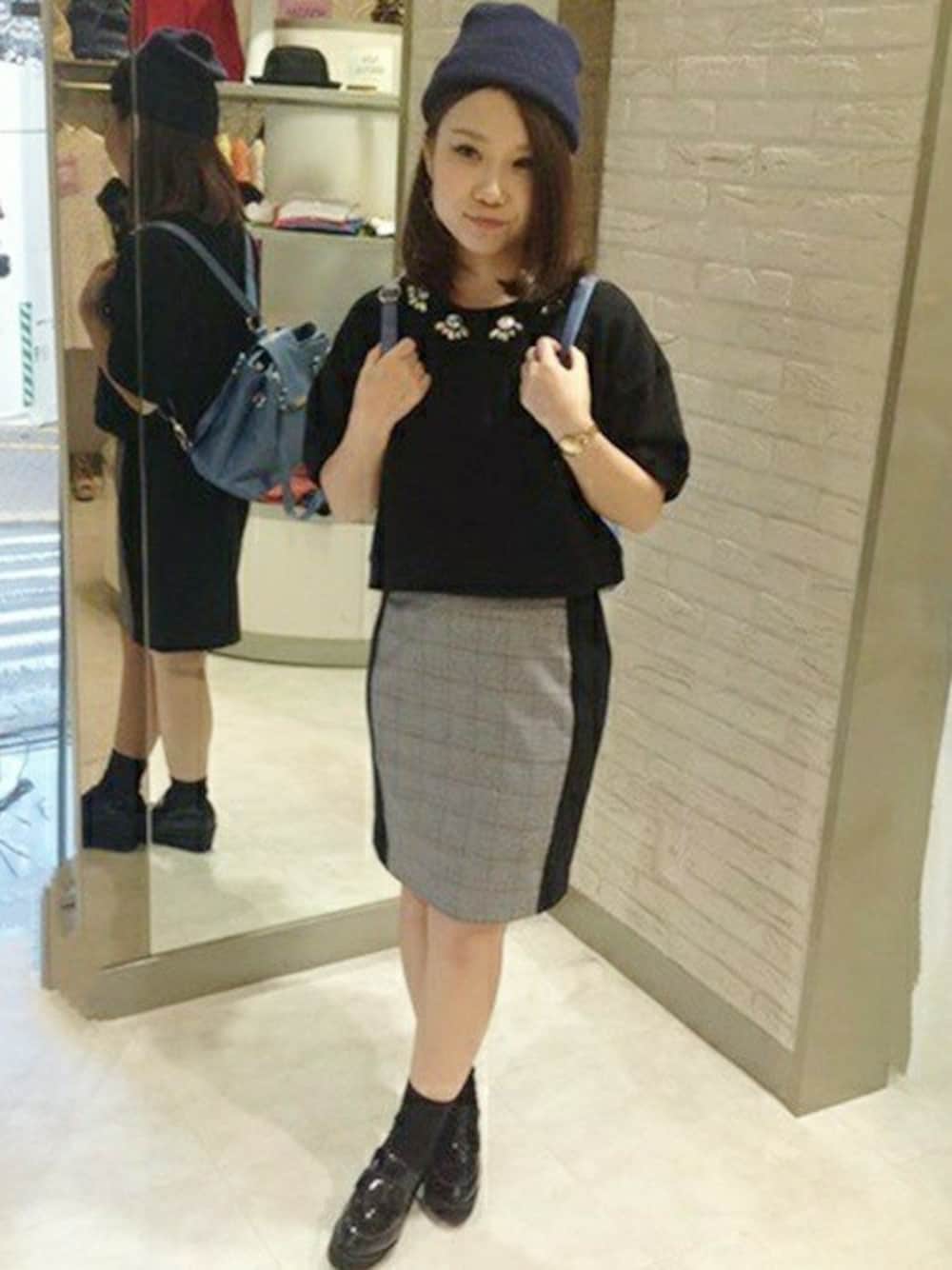 ショートトップス×タイトスカートが 絶妙ば美バランスを演出するコーディネート★ 甘く見えがちなトレンドのチェック柄は タイトで取り入れると◎