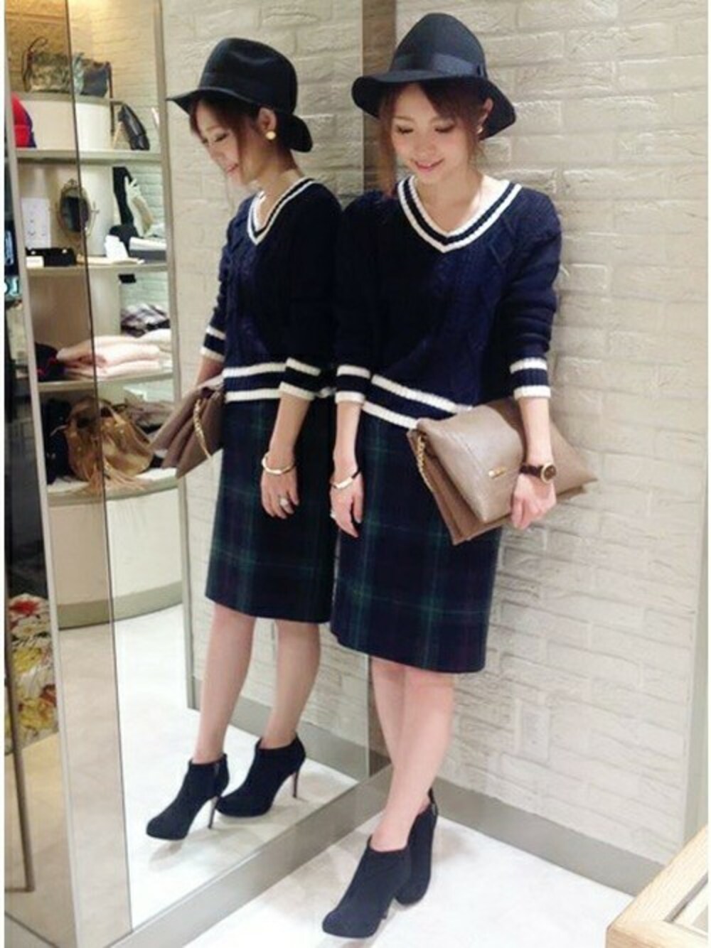 トレンドのカレッジライクニットがPOINTのコーディネート★ 今回はストレートスカートを合わせてスッキリと仕上げました。