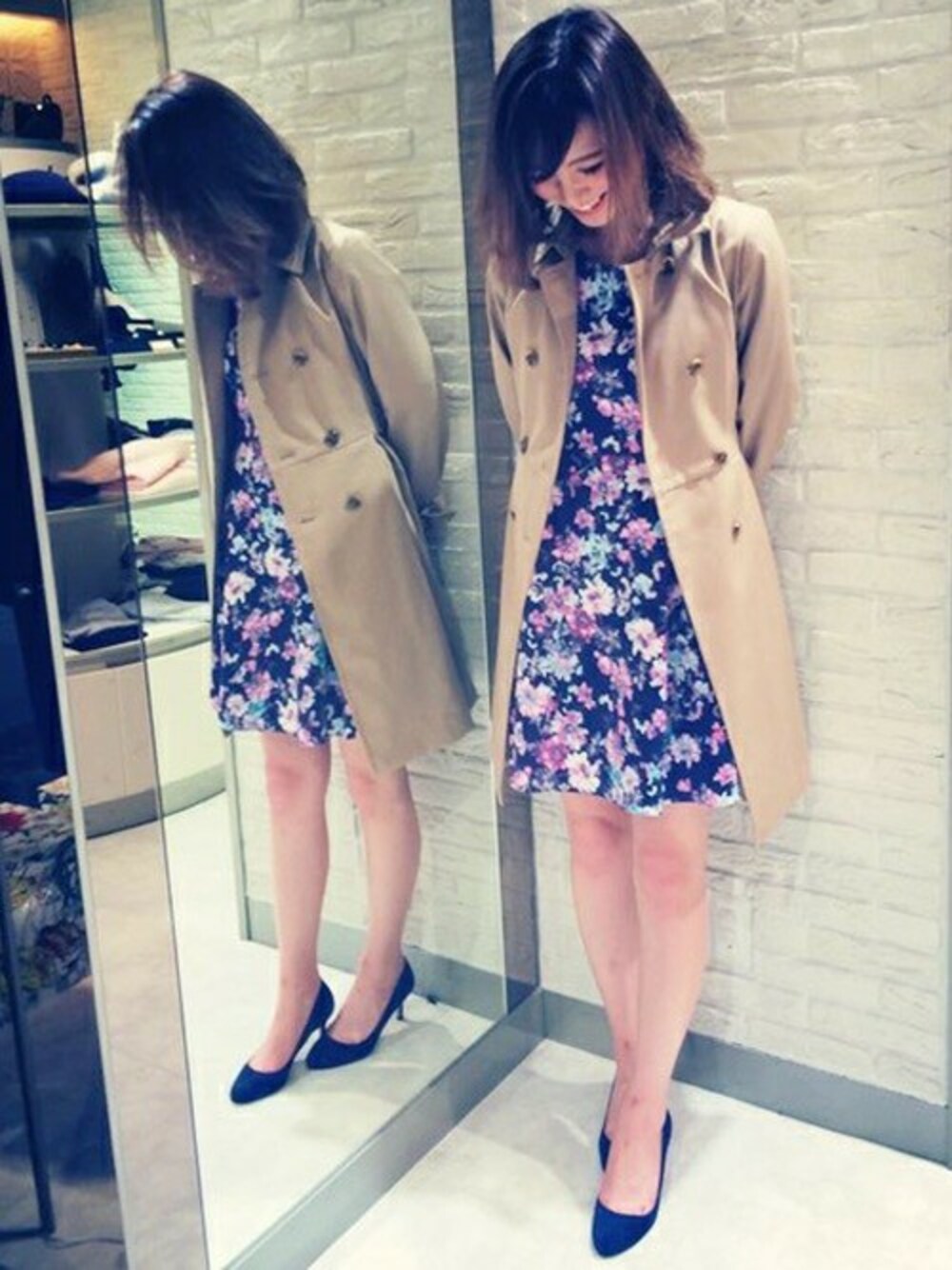 フラワープリントがちらっと見える女の子スタイル。 正統派のトレンチは春まで使える一着です★