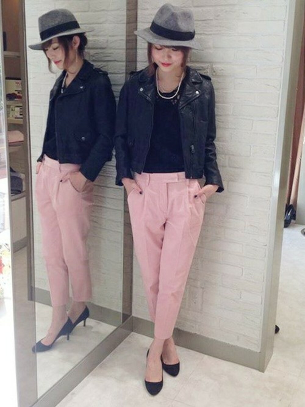 パッと目を引くピンクのコーデュロイパンツは 小物を黒で統一することで、甘さを控えたシックなコーディネートに。 ハットを合わせれば、ピンクもかっこいい印象で♪