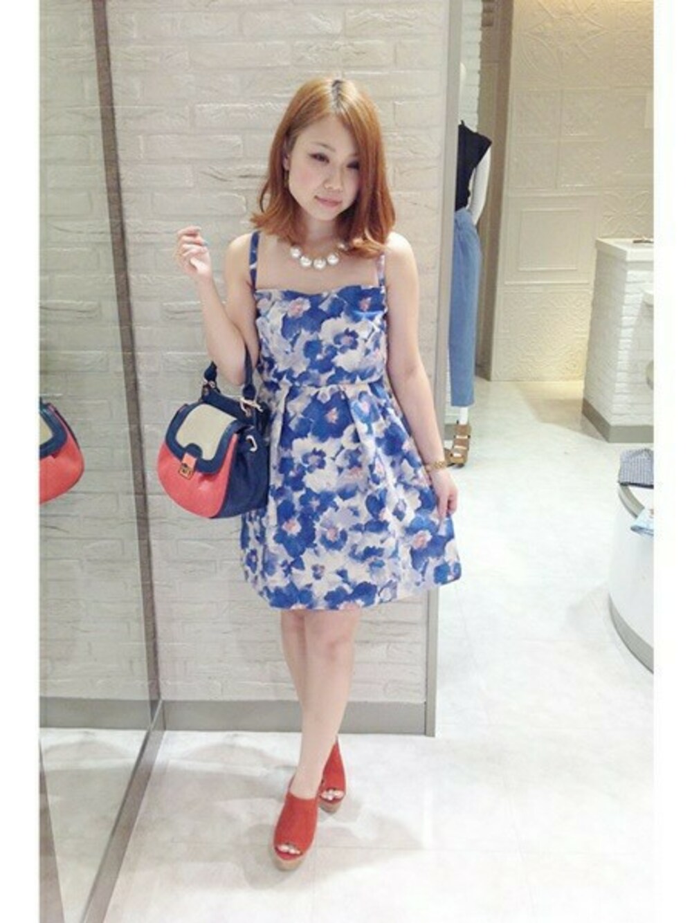 LIMITLESS LUXURY Shibuyaのワンピース「オリジナル BIG FLOWER プリントビスチェワンピース」を使ったコーディネート