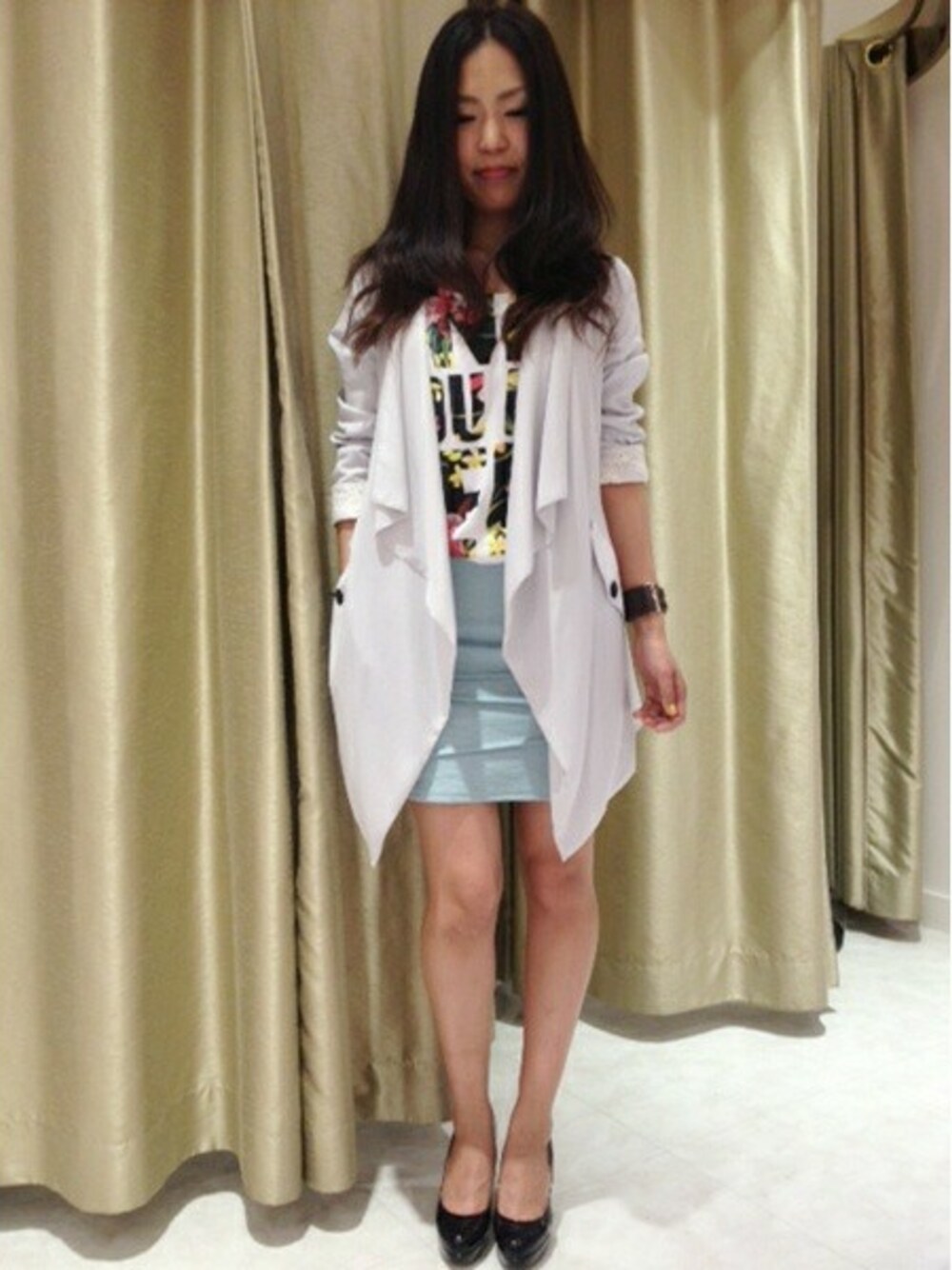 コートはなんと! 人気雑誌Sweetとのコラボ商品!!! フロント部分のドレープが 女らしさを引き立たせてくれる一着♡ 中のコーデは、 今年らしいタイトミニなシルエットで 最旬スタイルに♪