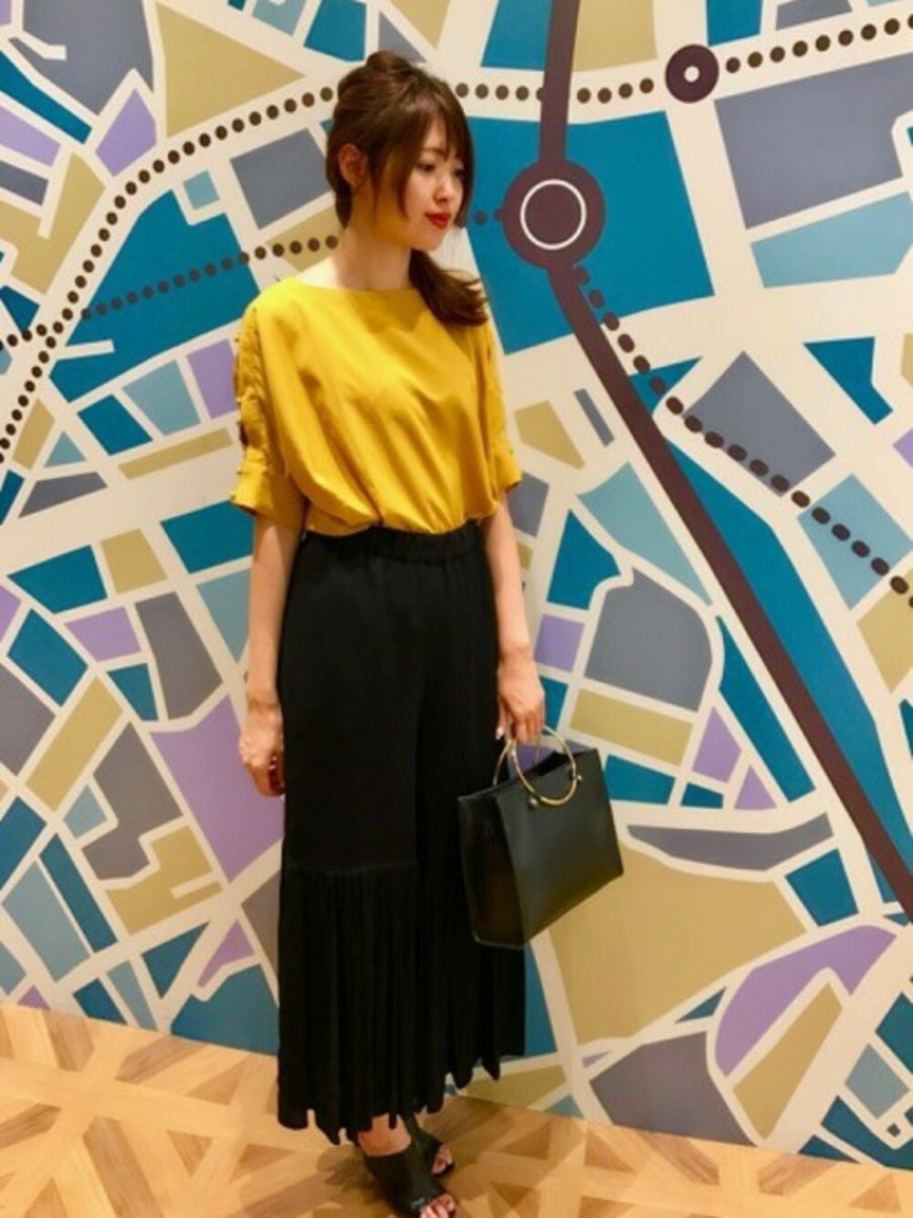 袖のスリーブデザインがかわいい秋カラーアイテム。 シワになりづらい素材とさらっと着れるのでヘビロテ間違いなし! ボトムもスカートに見えするパンツで動きやすさ◎ まずはカラーで秋を先取り!