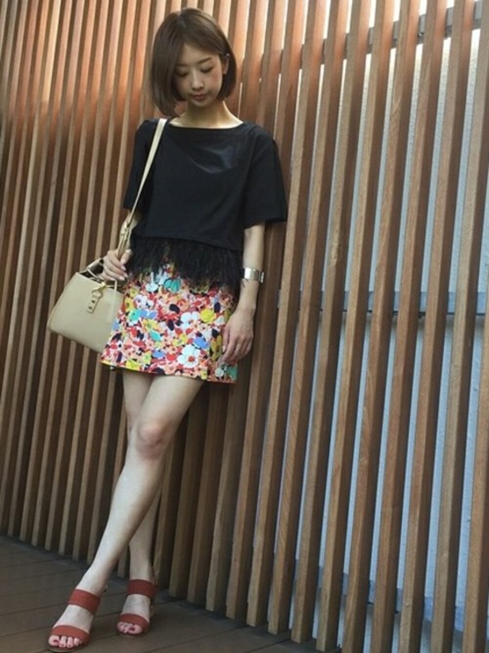 yumiのスカート「マルチフラワーミニスカート◆」を使ったコーディネート
