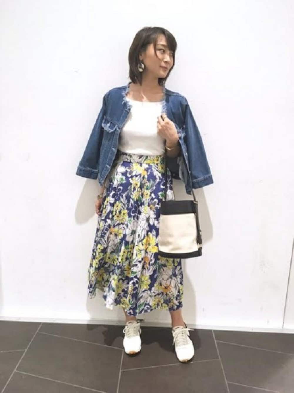 Limitらしい色鮮やかなフラワースカート。 ブルーベースが涼しげな一着。 着用は36サイズですがしっかり長さがあり一枚でも安心。 そのうえリネン素材なので夏でも着やすいのもポイントです。