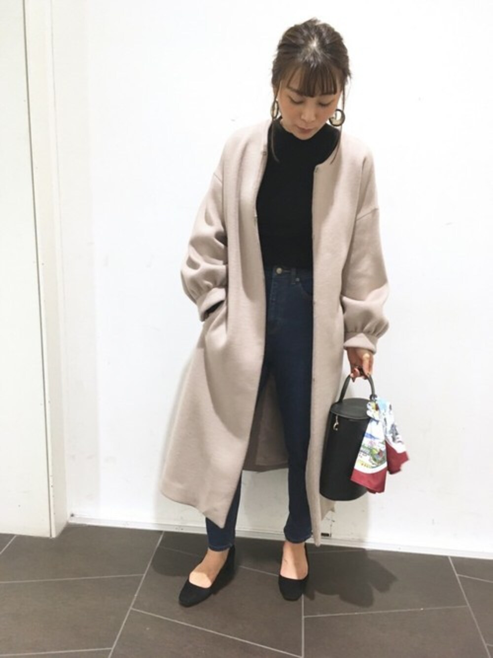 erinaのその他アウター「ボリュームスリーブノーカラーコート◆」を使ったコーディネート