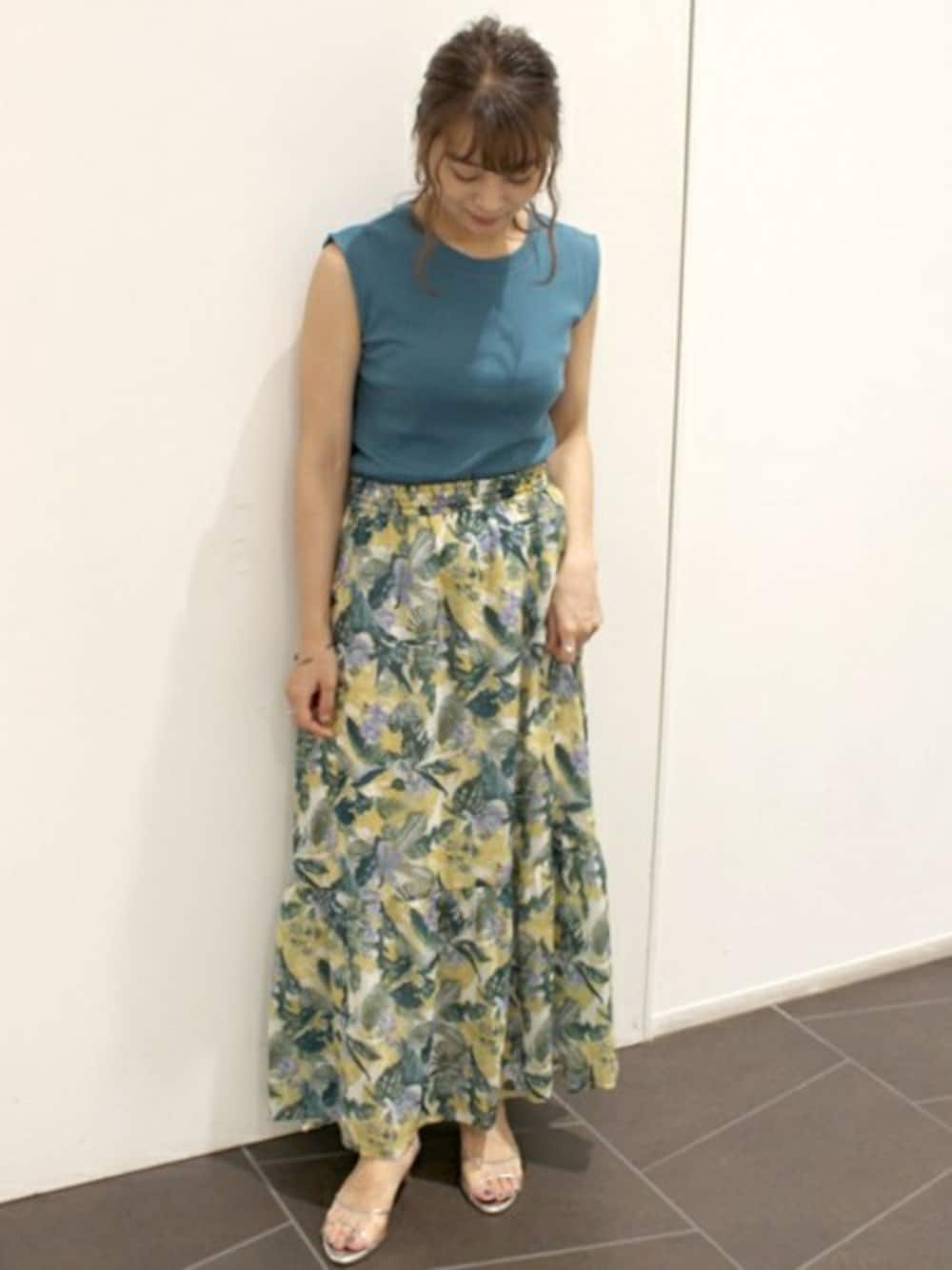 erinaのスカート「リーフフラワーロングスカート◆」を使ったコーディネート